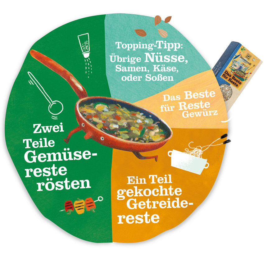 Du hast nichts übrig für Lebensmittelverschwendung? Genau wie wir! Wenn doch mal was übrig bleibt, gibt es das Beste für Reste. Unser neues Universal-Gewürz passt fast immer. Egal ob Reis, Nudeln, Dips oder Gemüse - mit der mediterranen Mischung kannst du fast all deine Reste verfeinern.