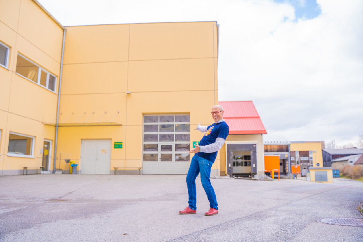 In den 31 Jahren in Sprögnitz wurde immer wieder gebaut und man könnte fast meinen, Hannes Gutmann ist ein alter Hase betreffend Baustellen. „Der Bau unseres neuen Holz-Hochregallagers war auch für mich etwas ganz Besonderes“, schwärmt er. Schon lange in seinem Kopf, konnte es nun endlich umgesetzt werden: Ein Lager fast gänzlich aus Holz, das mit einer Fläche von 3.000m², 9.000 Palettenstellplätzen und einer Höhe von 17 Metern einzigartig in Österreich ist. Im Herbst 2022 wurde es feierlich eröffnet und auf den Namen HimmelHoch–hervorgegangen aus einem Namensfindungs-Bewerb der Mitarbeitenden– getauft. Auf Platz zwei und drei der baulichen Highlights liegen bei SONNENTOR Gründer Gutmann „… der Bau des eigenen Bio-Gasthauses Leibspeis und jener der Kindertages-Betreuung SONNENSCHEINCHEN.“